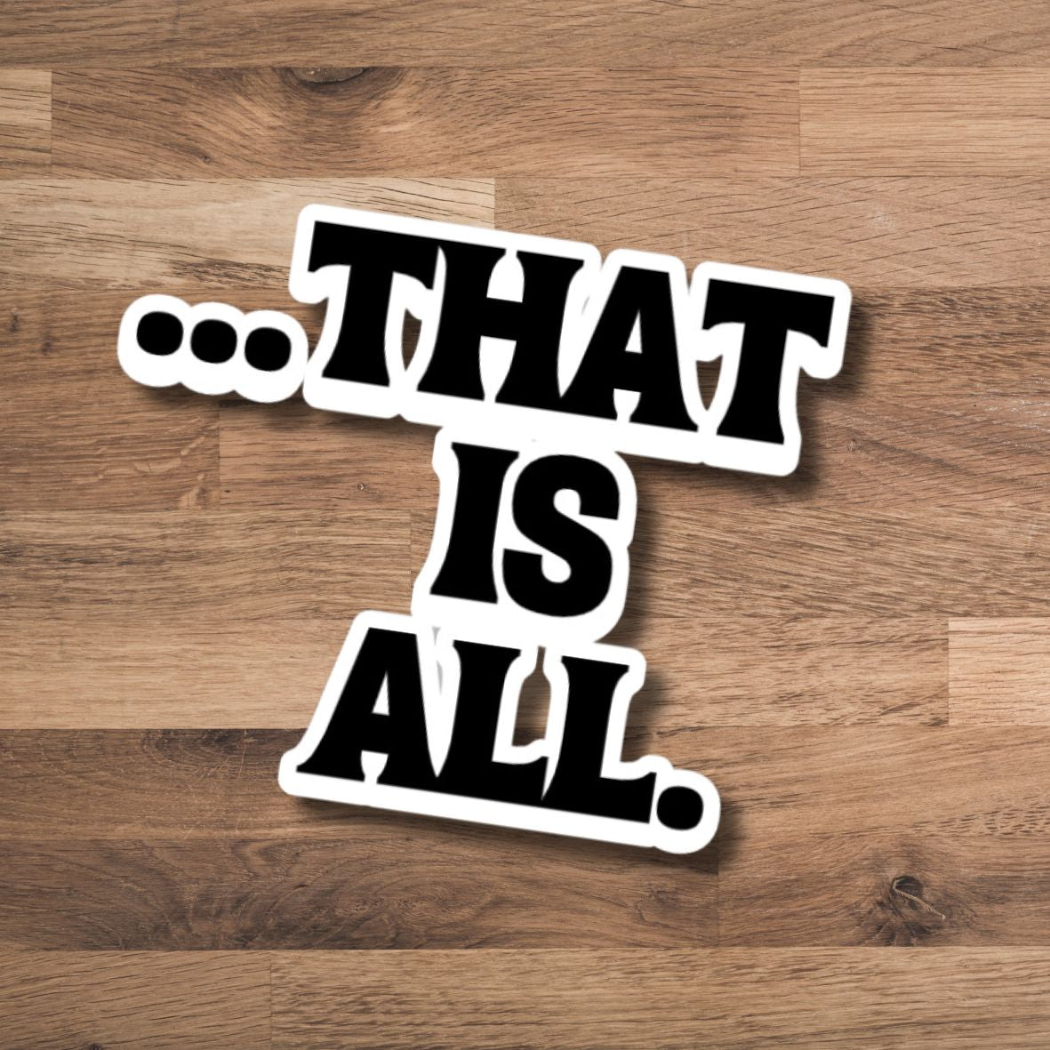 Express yourself with the "That is all," sticker. It is perfect for laptops, notebooks, phones, tablets, mirrors, water bottles, tumblers, planners, journals, gifts, and more!